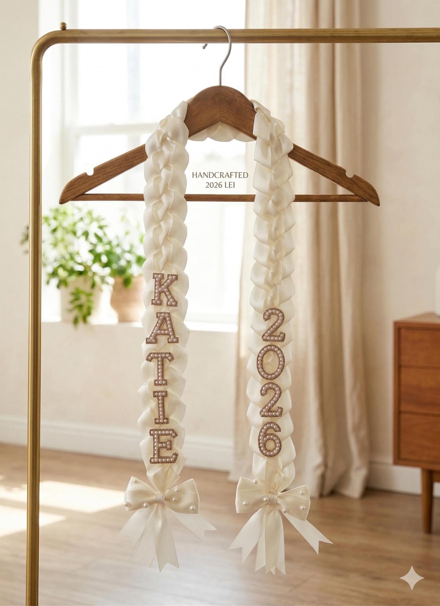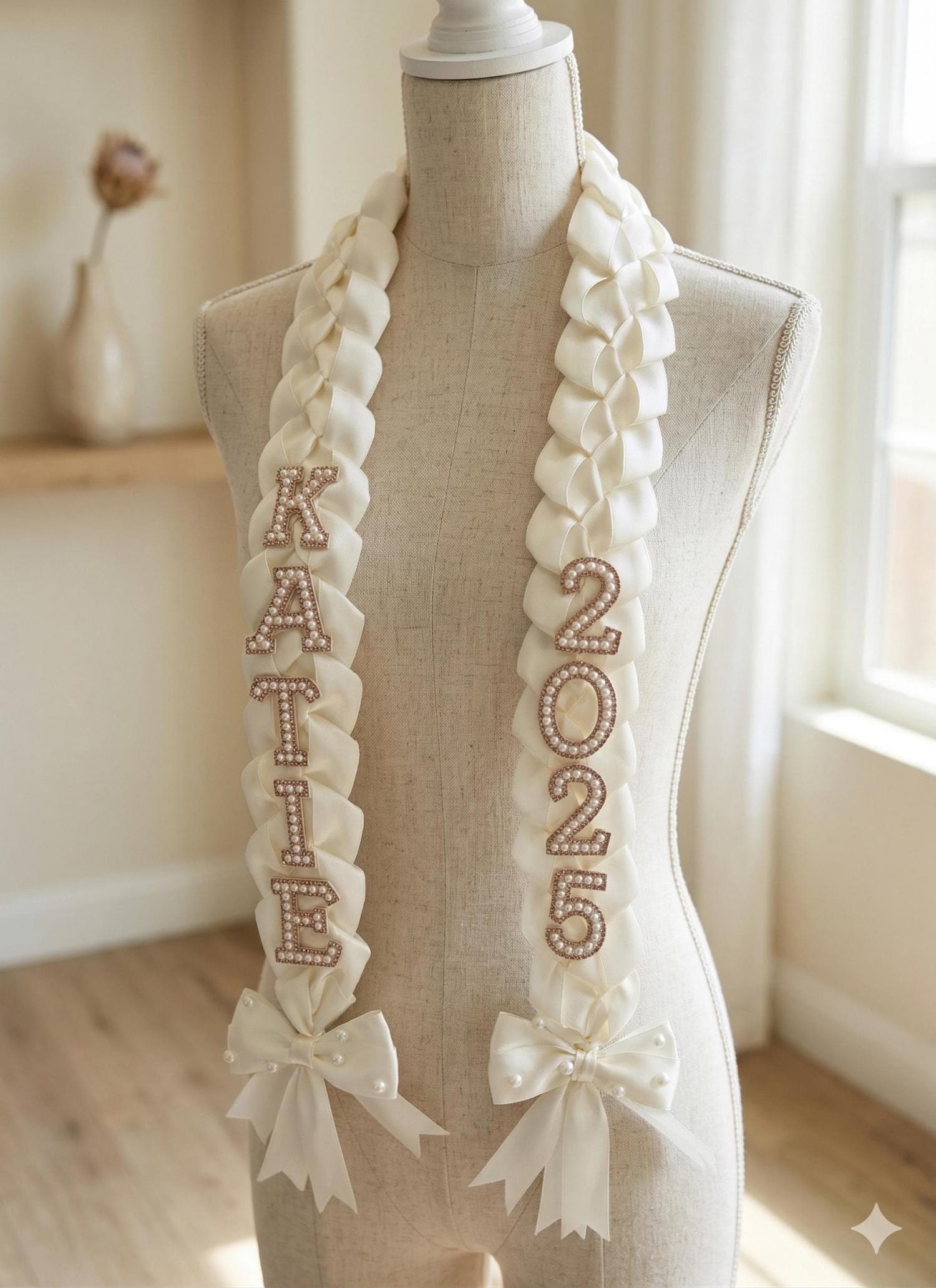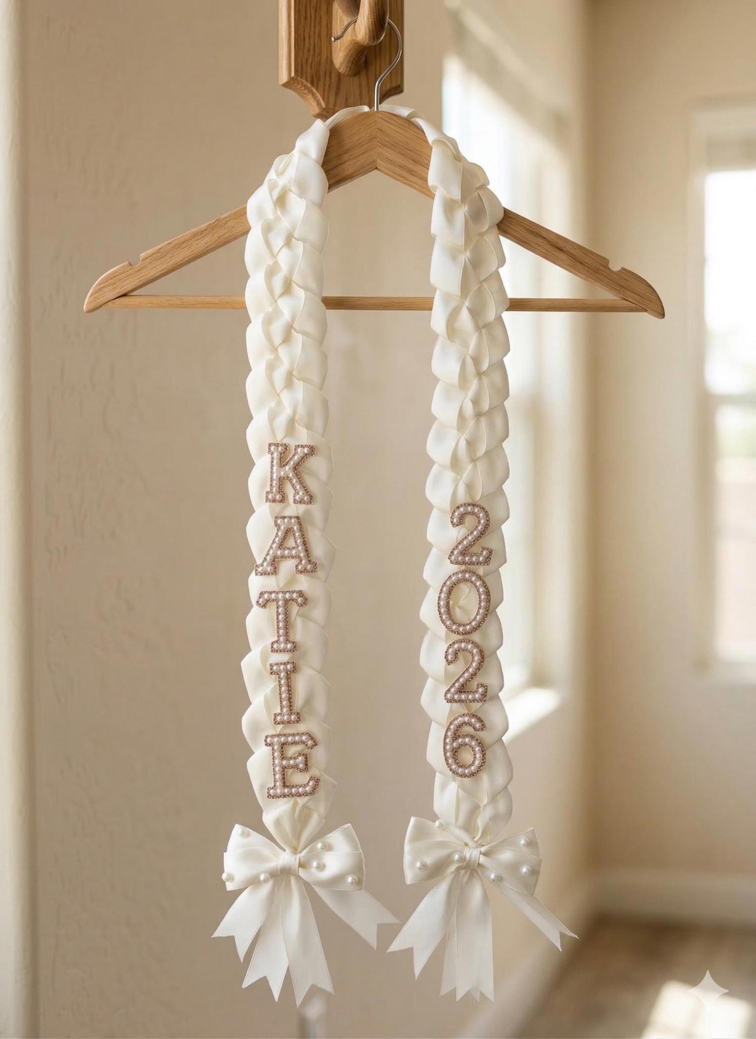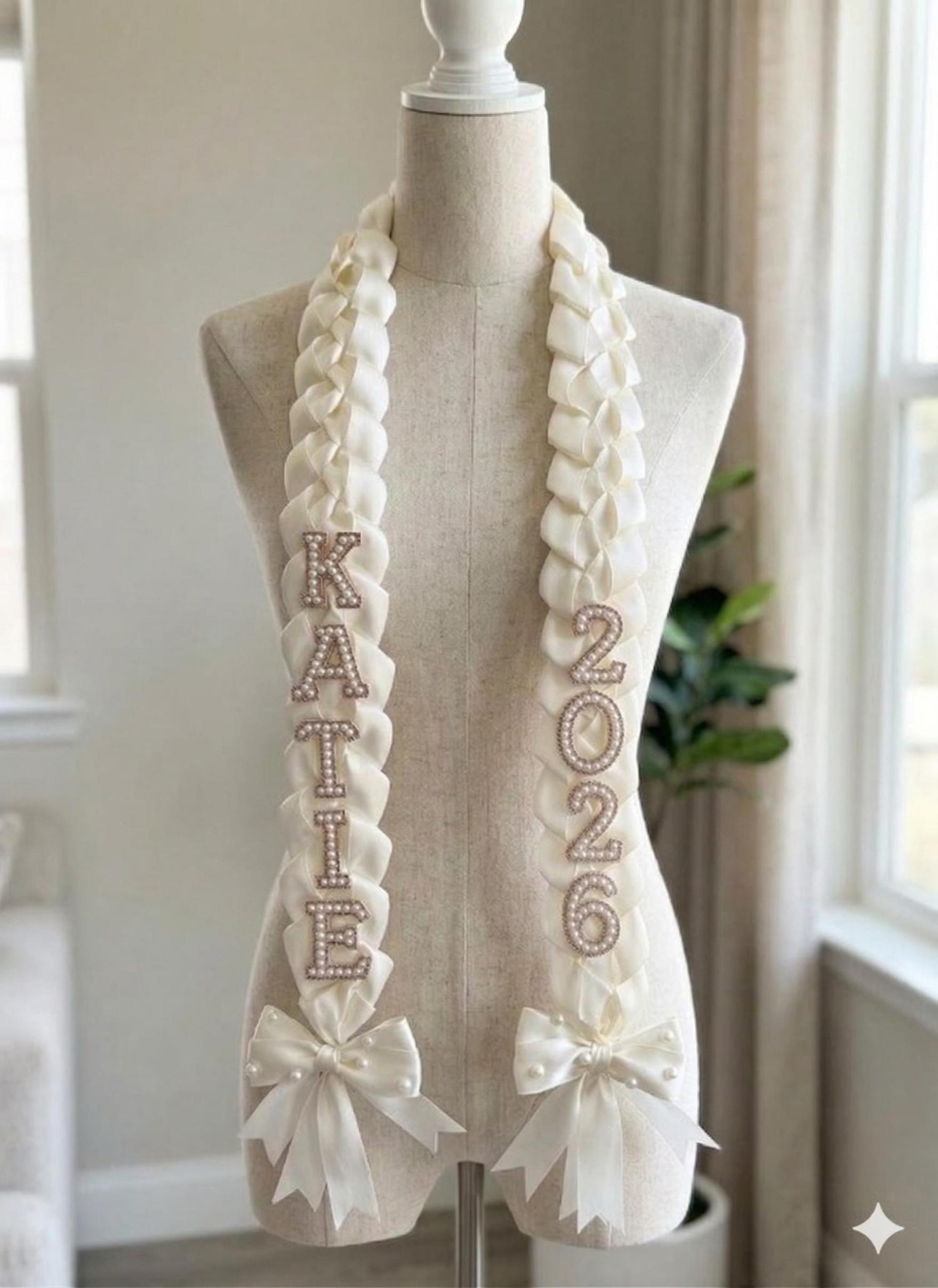 Custom Pearl & Satin Ribbon Graduation Lei - Class of 2026