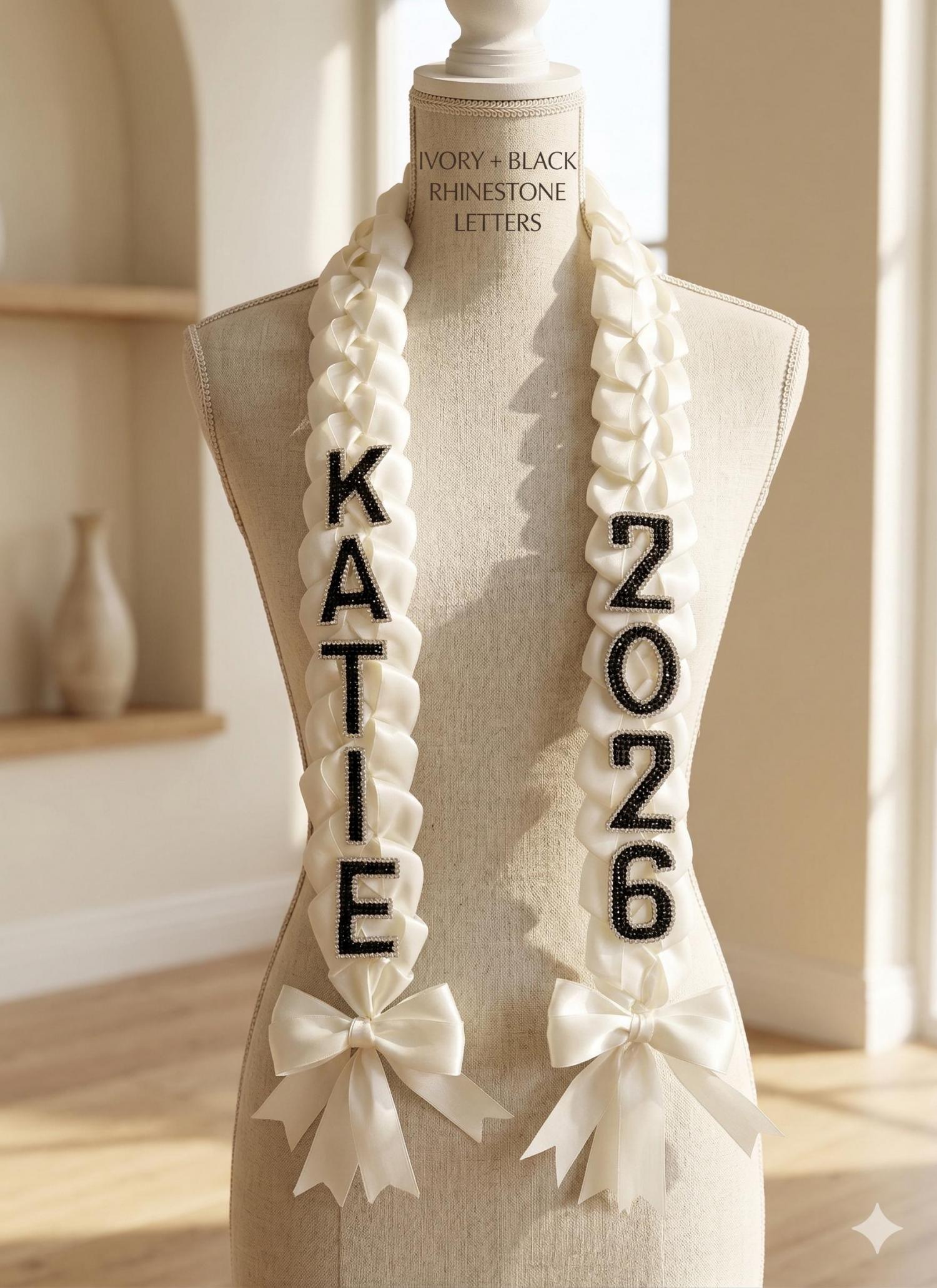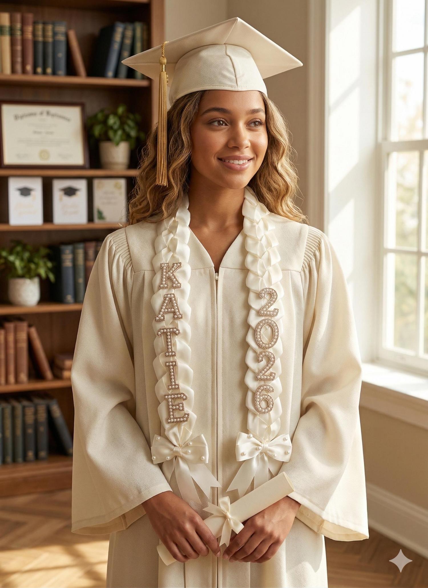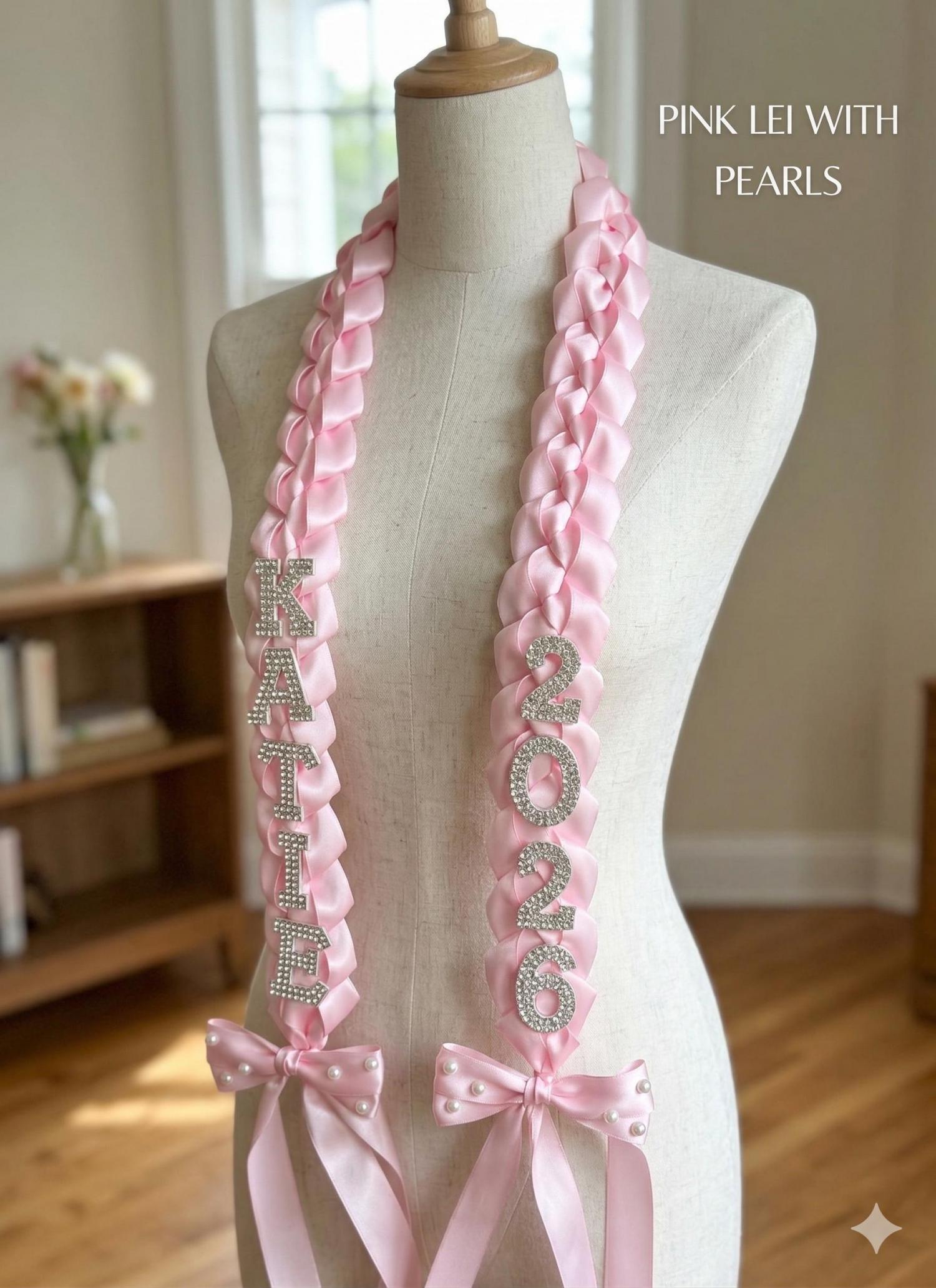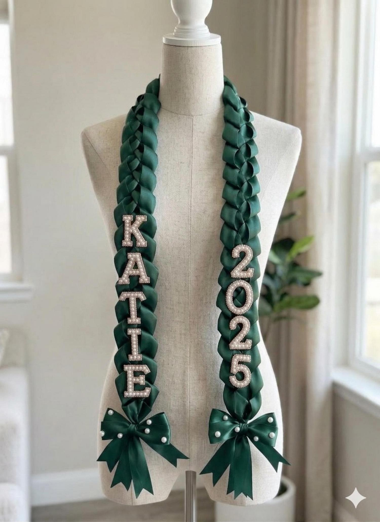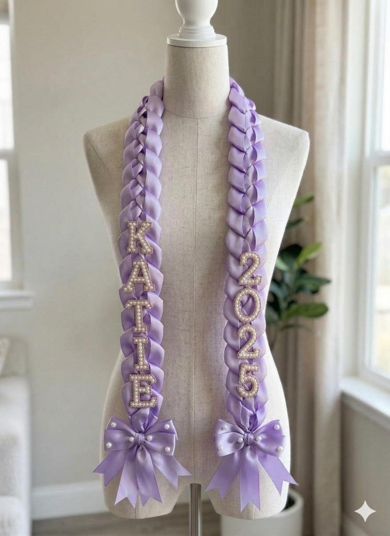 Custom Pearl & Satin Ribbon Graduation Lei - Class of 2026