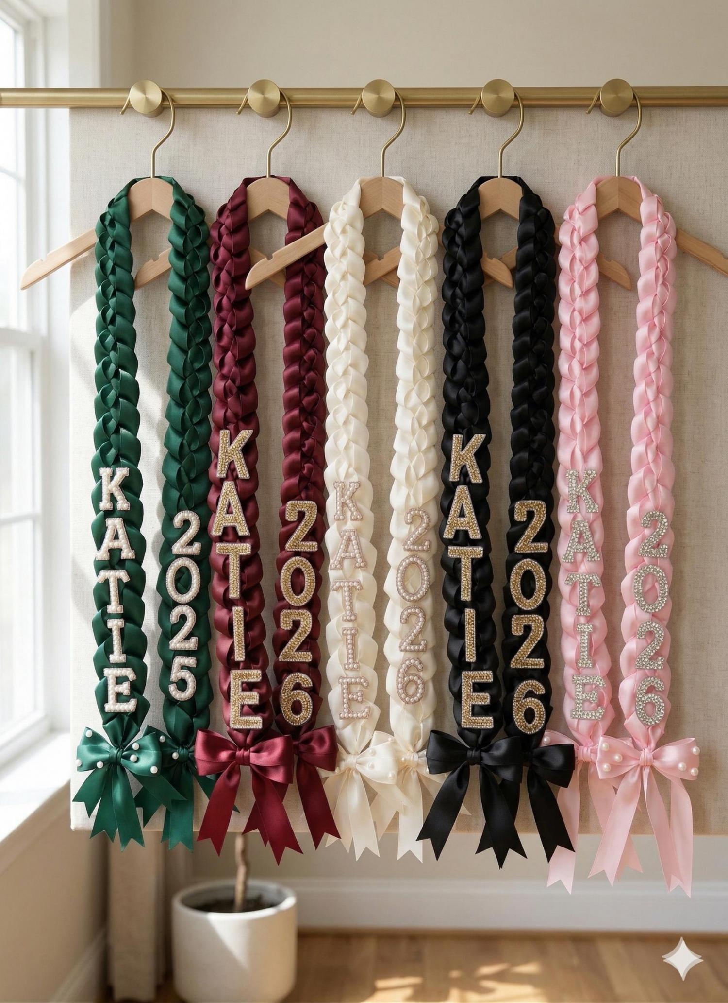 Celebrate your graduate’s big milestone with a touch of elegance! Our handcrafted Satin Ribbon Graduation Leis are the perfect alternative to fresh flowers—offering a beautiful, long-lasting keepsake that stays perfect from the ceremony to the after-party.